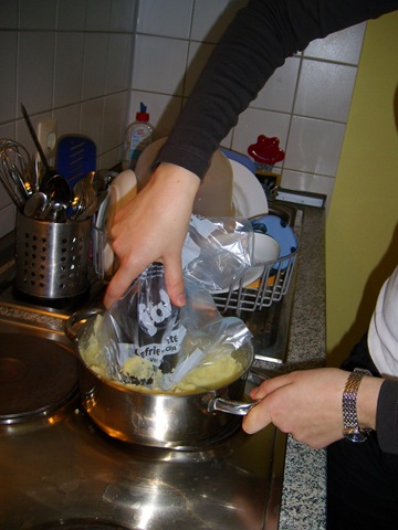 Kuvan on ottanu kaverini tiistaina, kun oltiin sen luona värkkäämässä luumullista jauhelihamureketta ja perunamuussia :D Oli kuulemma kuvaamisen arvonen tekniikka mulla. Työvälineenä mineraalivesipullo muovipussissa, ei ollu semmosta muussarivehettä (ei ole muuten täälläkään) enkä parempaakaan keksiny.